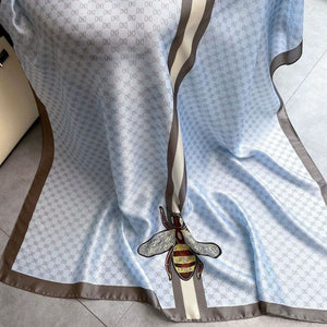 Elevate your wardrobe with this stunning faux satin scarf featuring a timeless bee print.