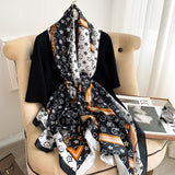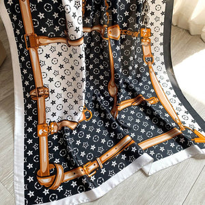Elegant Star and Horsebit Print Satin Scarf in Black/White