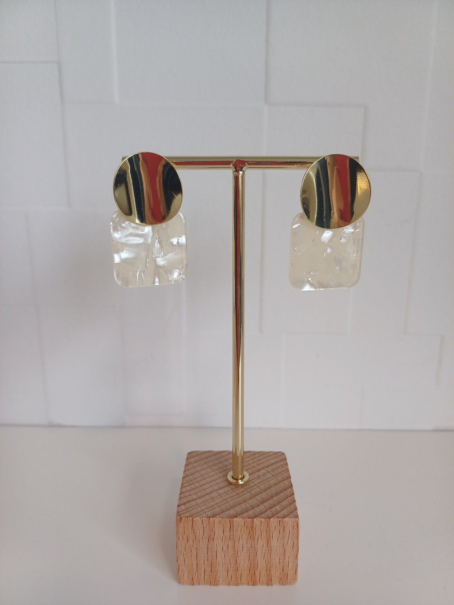 These elegant earrings feature a stunning gold marble stone drop, adding a touch of sophistication to any outfit. Made with high-quality materials, they are sure to make a statement and elevate your style. Enhance your look and showcase your unique sense of fashion with these beautiful Marble Stone Earrings.