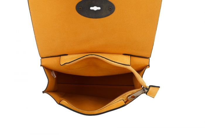 Mustard Flap Over Messenger Bag With Metal Clasp
