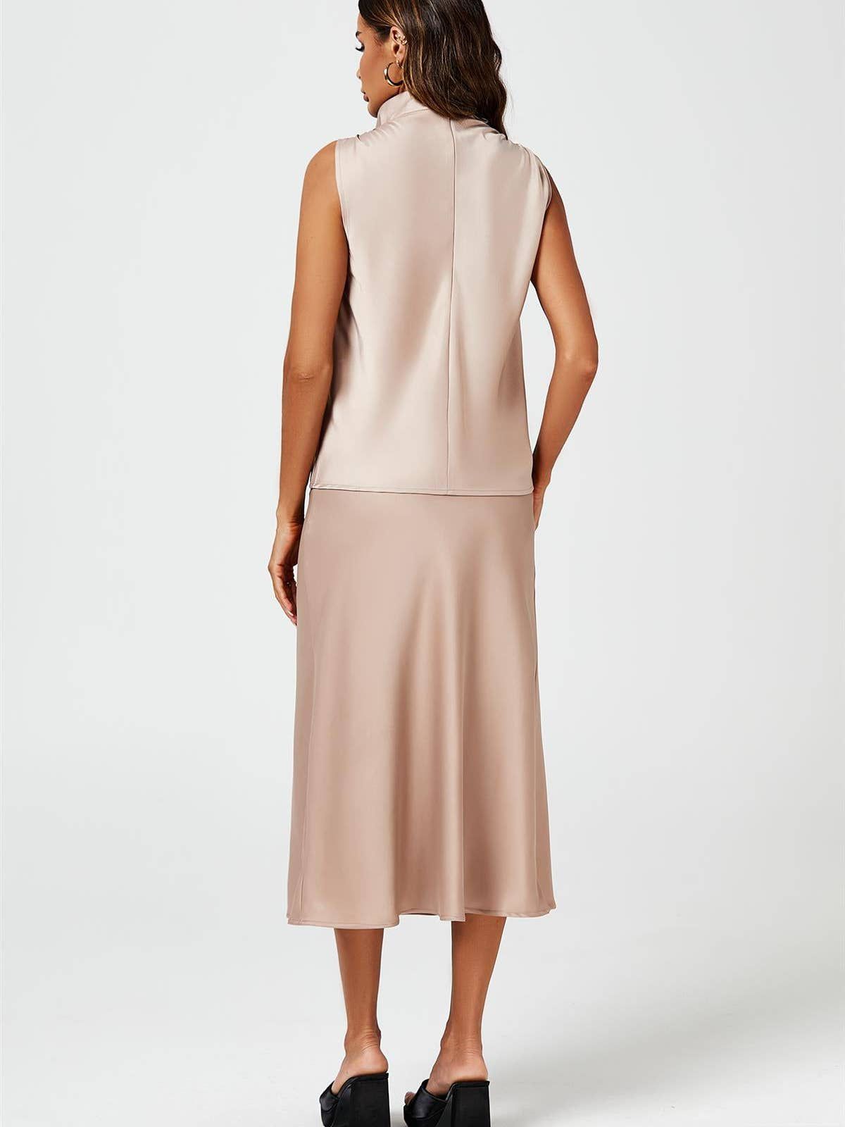 Elevate your style with our Satin Cowl Neck Sleeveless Blouse. Crafted from high-quality satin, this blouse exudes sophistication and luxury. The cowl neck design adds an element of elegance to your outfit, making it perfect for special occasions or a night out. Its sleeveless cut keeps you cool and comfortable. Whether you pair it with tailored pants, a skirt, or your favorite jeans, it's a versatile piece for various settings. The smooth, silky feel of the satin fabric against your skin enhances the overall experience. Embrace the timeless charm of our Satin Cowl Neck Sleeveless Blouse and make a statement with your impeccable style.
