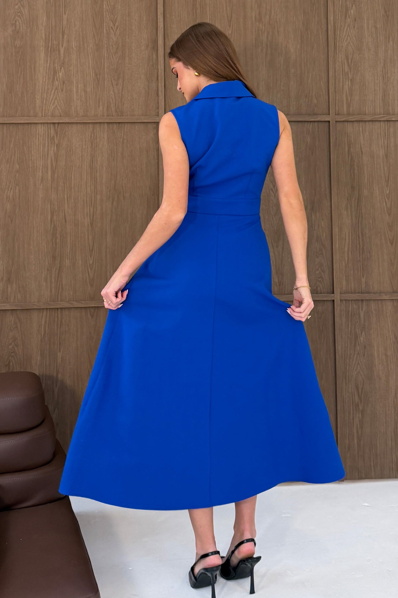 Cameron Collared Tailored Gold Button Shirt Dress Cobalt