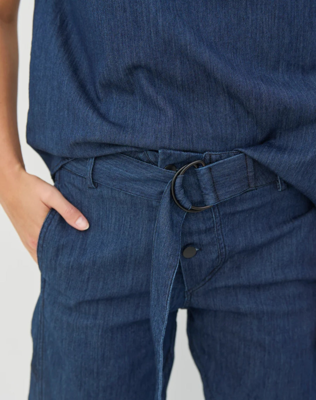 These denim trousers have a comfortable fit with plenty of stretch, making them easy to move around in all day. The integrated belt serves both a practical purpose and as a cool detail that adds some extra character to the trousers. A relaxed style that is easy to combine with soft knits, shirts, and T-shirts