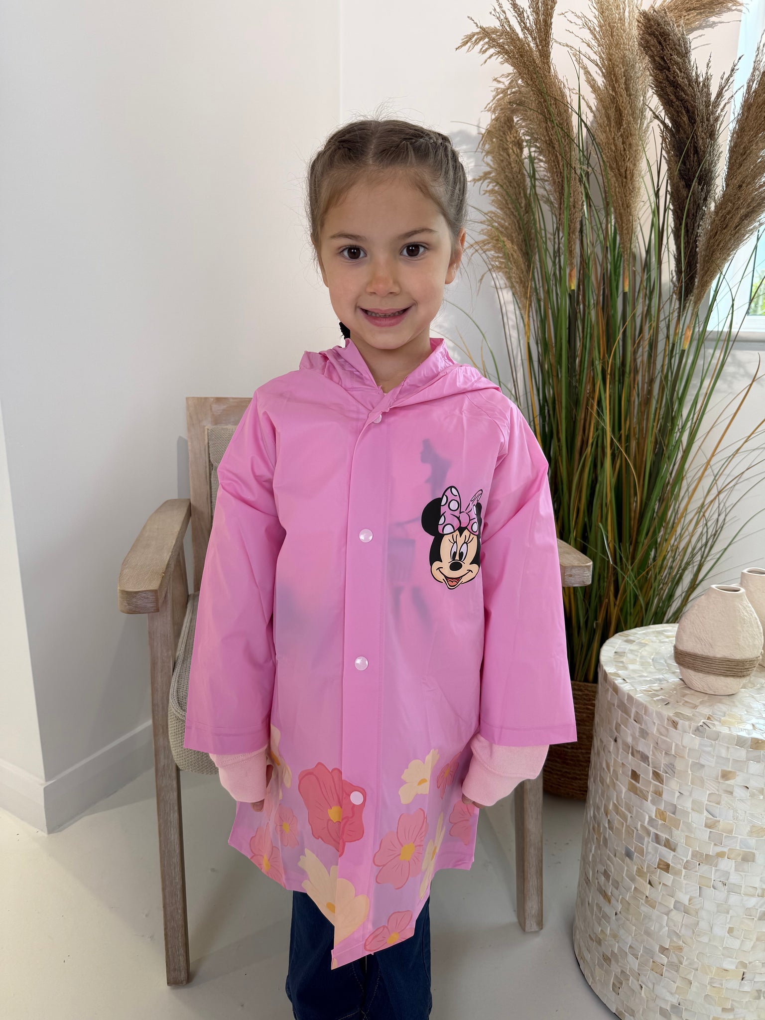 Stay dry and stylish in our Mickey Mouse Raincoat, featuring a beautiful baby pink Minnie Mouse design. Perfect for splashing in puddles, this rain Mac is a must-have for any Disney fan.