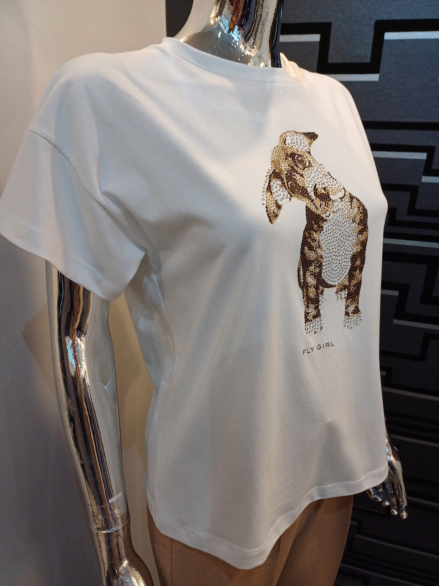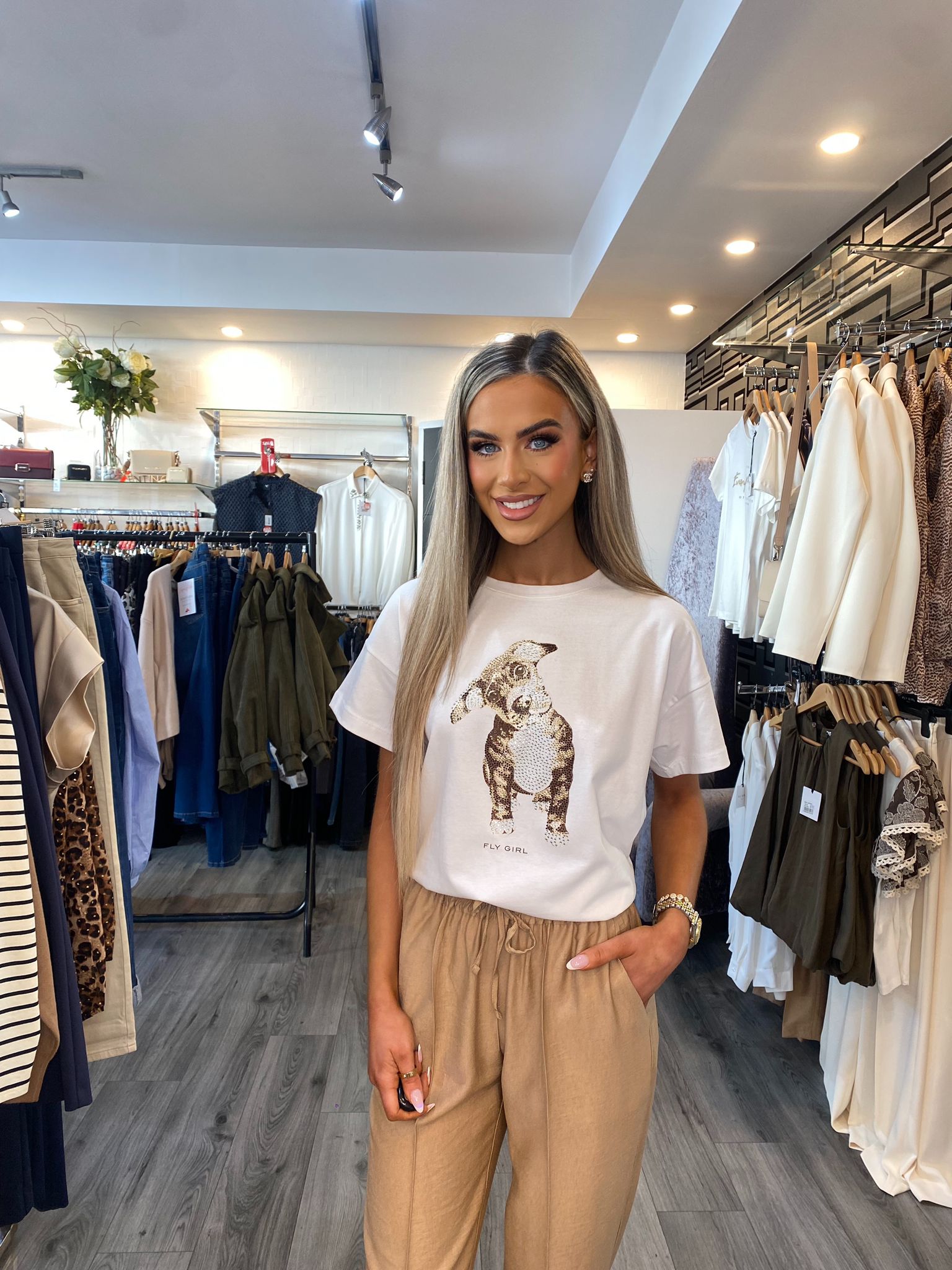 The FLYGIRL dog embellished t-shirt is crafted from high-quality materials, ensuring a luxurious feel. Its diamanté embellishments add a sophisticated touch, making it a stylish statement piece. This t-shirt combines comfort with visual appeal, perfect for dog lovers seeking both fashion and functionality in their attire.