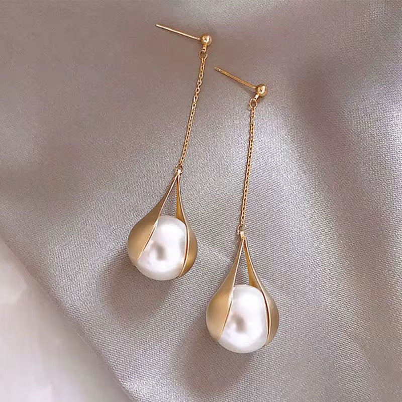 Add a touch of elegance to your accessories with our stunning pearl gold drop earrings. The lustrous pearls and gold accents bring sophistication to any outfit. Elevate your style with these classic and timeless earrings.